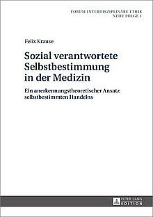 Krause, Felix: Sozial verantwortete Selbstbestimmung in der Medizin. Ein anerkennungstheoretischer Ansatz selbstbestimmten Handelns (Forum Interdisziplinäre Ethik. Neue Folge 1), Frankfurt/M. u. a.: Peter Lang 2016.