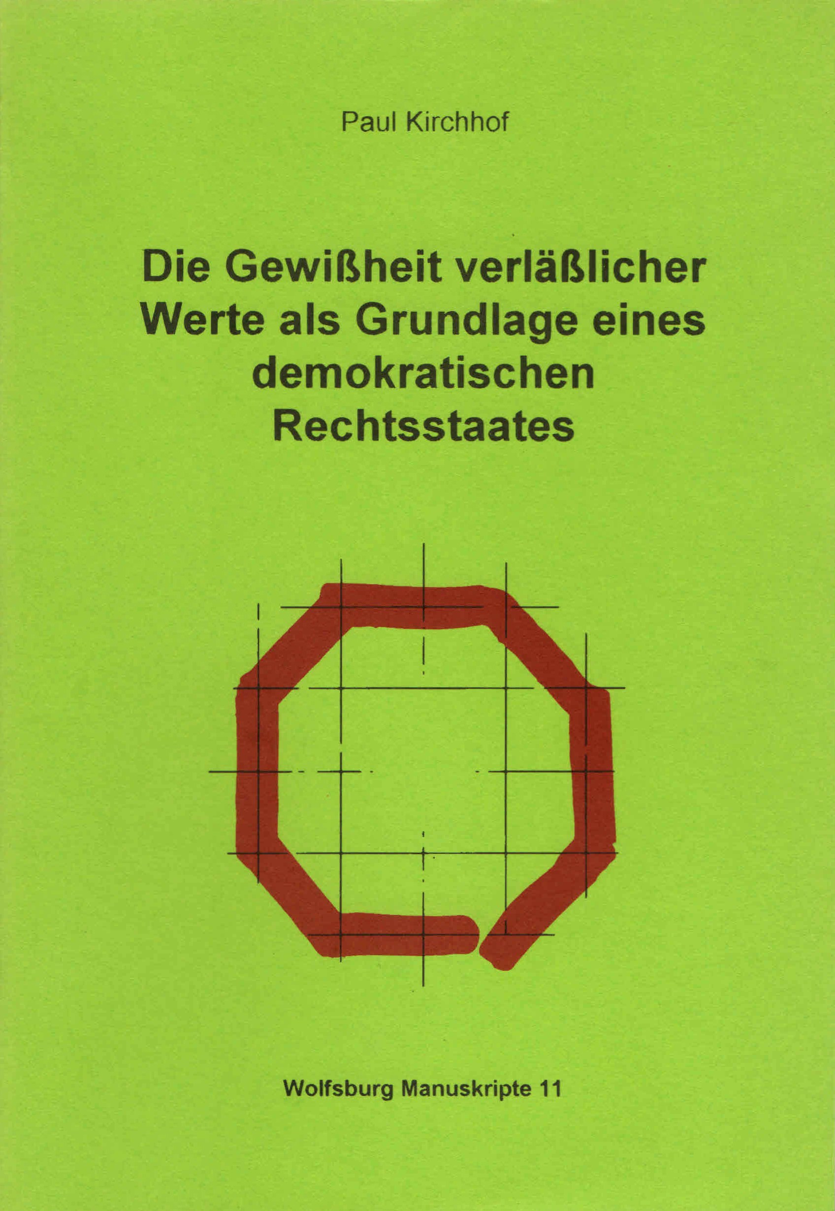 Kirchhof, Paul: Die Gewißheit verläßlicher Werte als Grundlage eines demokratischen Rechtsstaates (Wolfsburg-Manuskripte 11), Mülheim/Ruhr 1996.