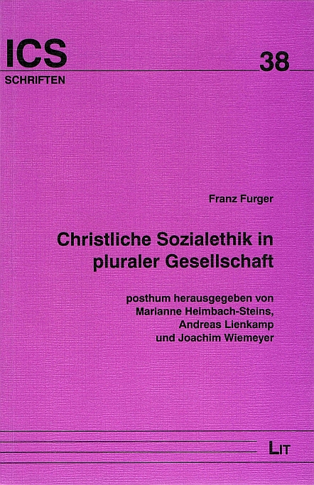 Furger, Franz: Christliche Sozialethik in pluraler Gesellschaft, posthum hrsg. von Marianne Heimbach-Steins, Andreas Lienkamp und Joachim Wiemeyer (Schriften des Instituts für Christliche Sozialwissenschaften 38), Münster: Lit 1998 (ISBN 3-8258-3527-8).