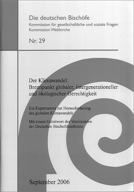 Climate Change: A Focal Point of Global, Intergenerational and Ecological Justice. An Expert Report on the Challenge of Global Climate Change. With a Foreword by the President of the German Bishops' Conference (The German Bishops – Commission for Society and Social Affairs / Commission for International Church Affairs 29, published by the Secretariat of the German Bishops' Conference), 2nd, updated edition, Bonn 2007 (Andreas Lienkamp together with the Working Group on Ecological Issues of the Commission for Society and Social Affairs of the German Bishops' Conference).