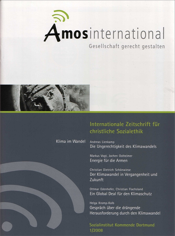 Amosinternational - Internationale Zeitschrift für christliche Sozialethik 2 (2008) Nr. 1 - Schwerpunktthema "Klima im Wandel" mit Beiträgen von Andreas Lienkamp (Konzept des Schwerpunktthemas: Andreas Lienkamp), Jochen Ostheimer / Markus Vogt, Christian-Dietrich Schönwiese, Ottmar Edenhofer / Christian Flachsland sowie Helga Kromp-Kolb (ISSN 1864-5313).