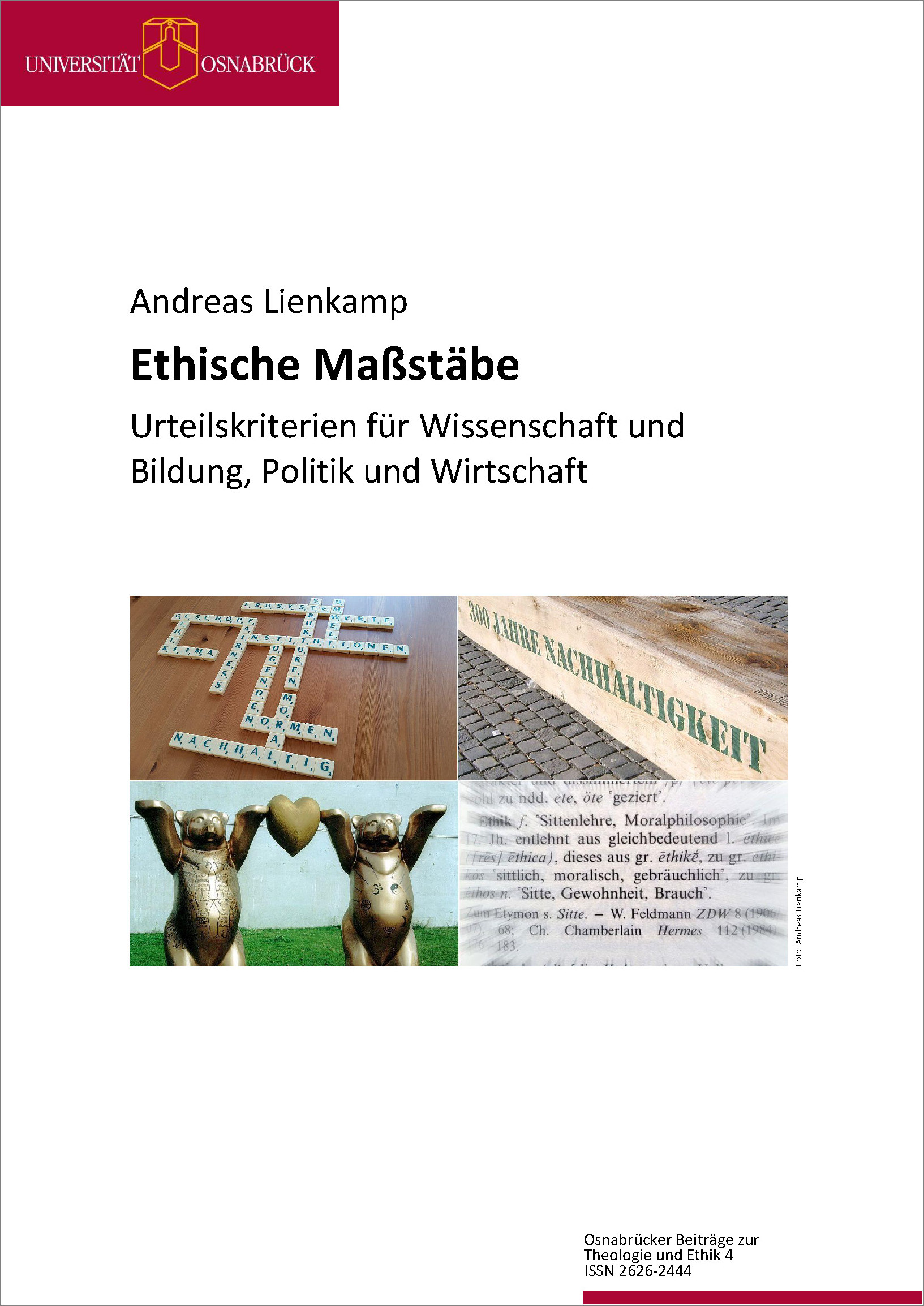 Lienkamp, Andreas: Ethische Maßstäbe. Urteilskriterien für Wissenschaft und Bildung, Politik und Wirtschaft (Osnabrücker Beiträge zur Theologie und Ethik 4), Osnabrück 2020.
